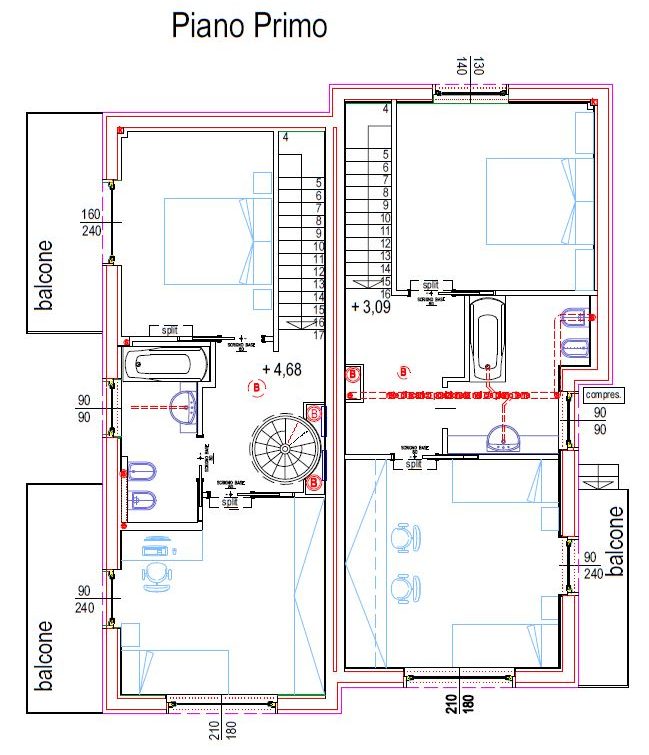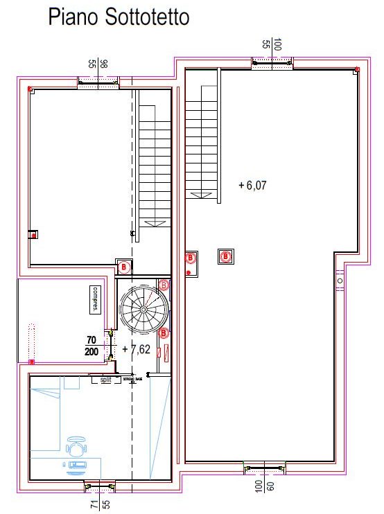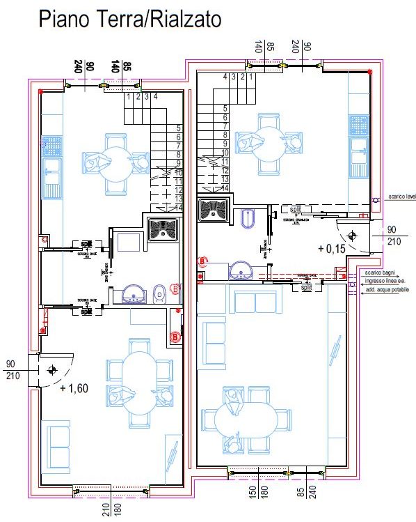 Unità B: Villino di mq. 150 distribuito su due livelli abitativi, piano terra zona giorno con cucina, sala e bagno e piano primo zona notte con n. 2 camere da letto e bagno oltre che taverna e locale mansarda. Esternamente è fornito di terrazzo indipendente accessibile sia dall’abitazione che dal giardino, balconi e giardino, box con due posti auto.